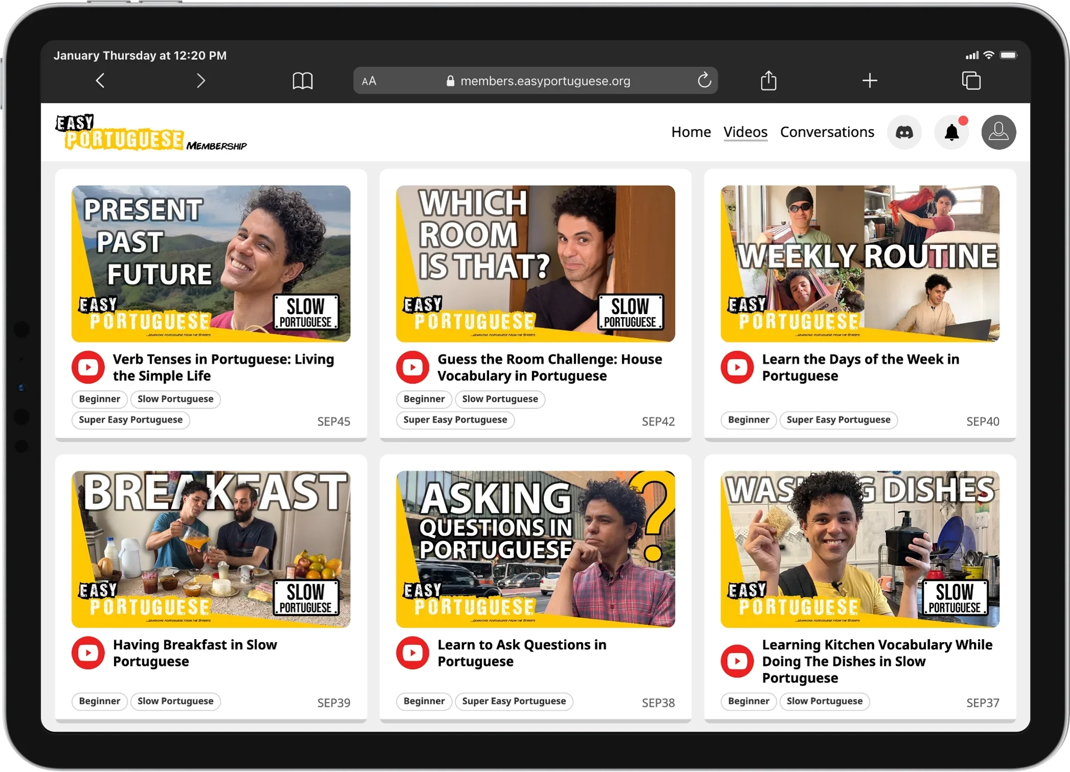Watching authentic Portuguese language videos alone wasn't enough. What was missing was a place to actually use it — with structure to guide you and real people to practice with. Free videos can't give you that. We can.